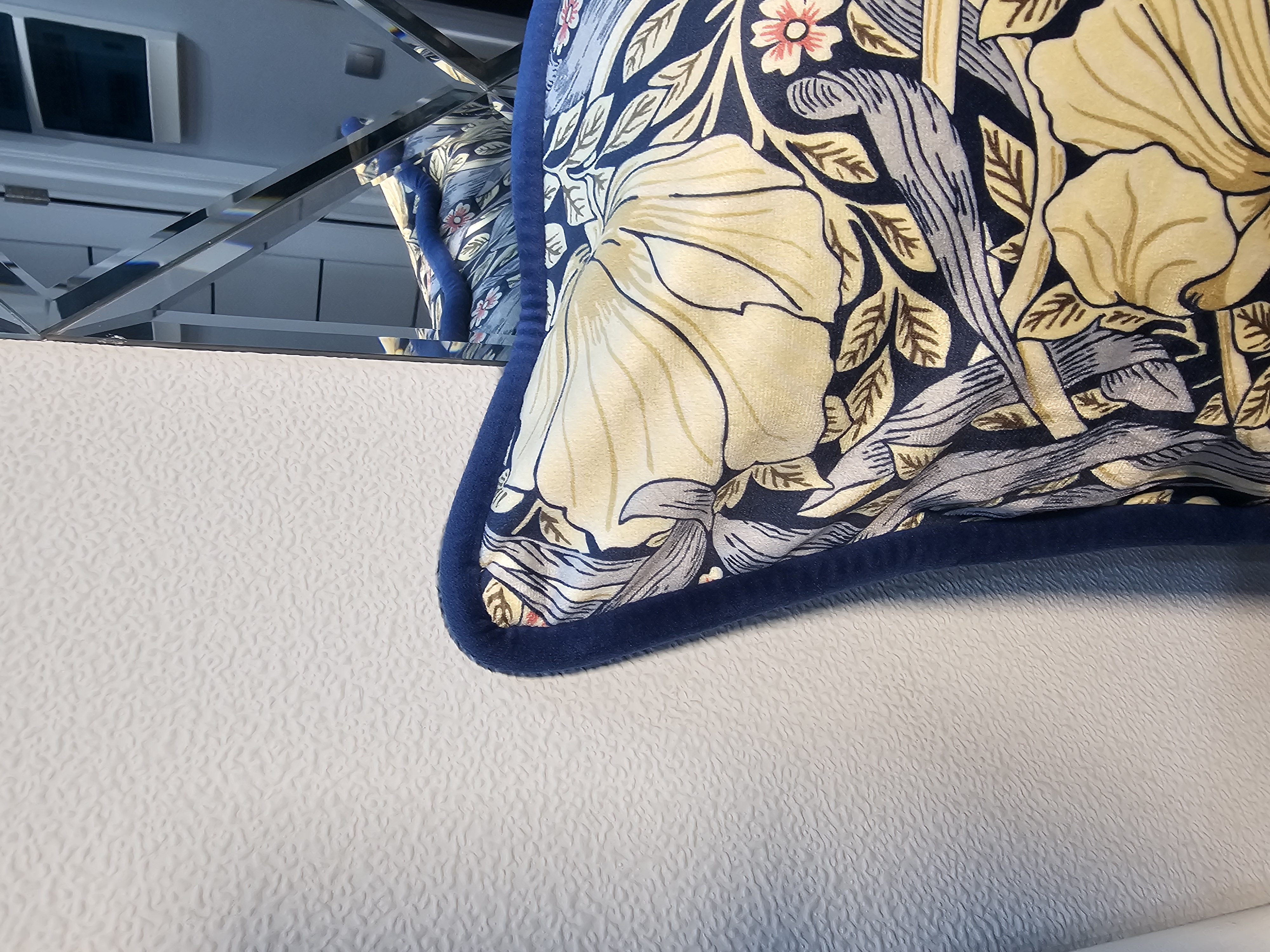 По периметру наволочки бархатный кант, внизу наволочки -потайная молния.