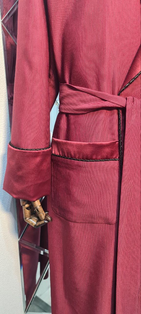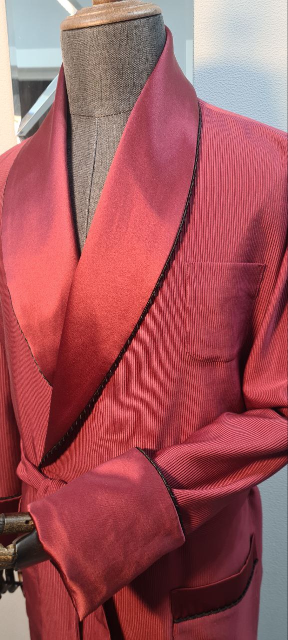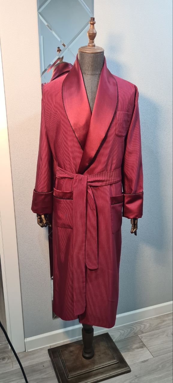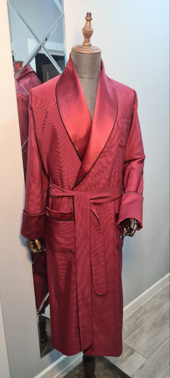 Красивый и изысканный мужской халат выполнен из облегченного жаккарда в "рубчик" производства Италия, с отделкой из хлопкового атласа и черного канта .